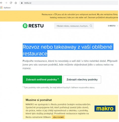 Na webu restu.cz, který slouží pro vyhledávání restaurací, jsem začátkem dubna našel tento text: „Podpořte restaurace, které to nevzdaly a vaří dál i v této nelehké době. Připravili jsme pro vás seznam podniků, kde můžete objednávat jídlo s sebou nebo na rozvoz.“ (38) V Brně těch ověřených provozů bylo ke dni 9. dubnu 2020 144, v Ostravě třeba 90. Pokladní systém Storyous dal dohromady mapu, v níž se s hashtagem #kdesenajim objevují restaurace s výdejem nebo rozvozem jídla. (39). A tak podobně.
